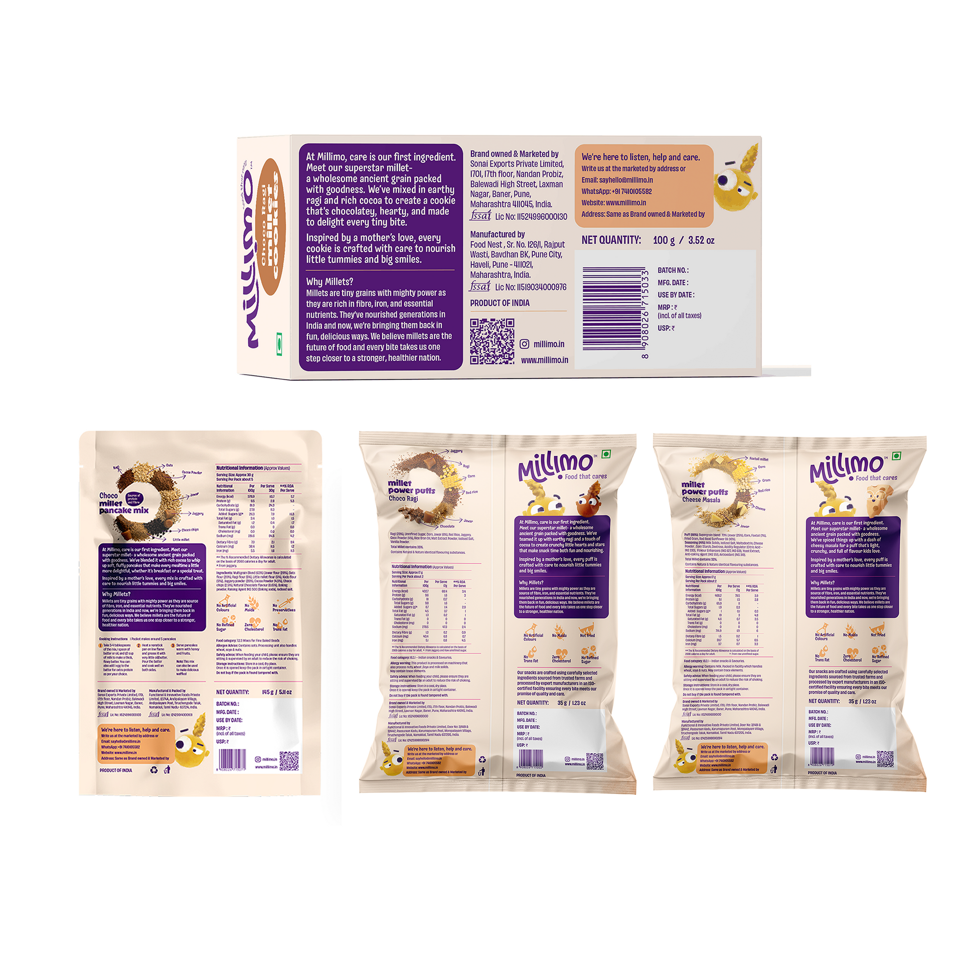 Millimo pancakes are crafted with care which has the natural goodness of millets, multigrains, jaggery and absolutely nothing artificial.