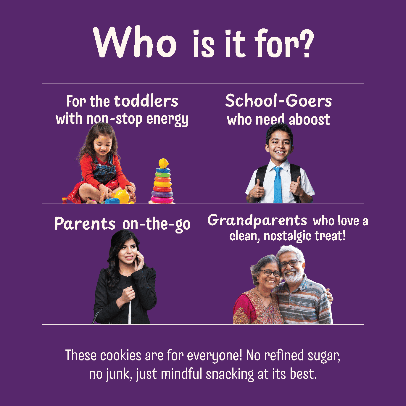 For the toddlers with non-stop energy, school-goers who need a boost, parents on-the-go, or even grandparents who love a clean, nostalgic treat! These cookies are for everyone! No refined sugar, no junk, just mindful snacking at its best.