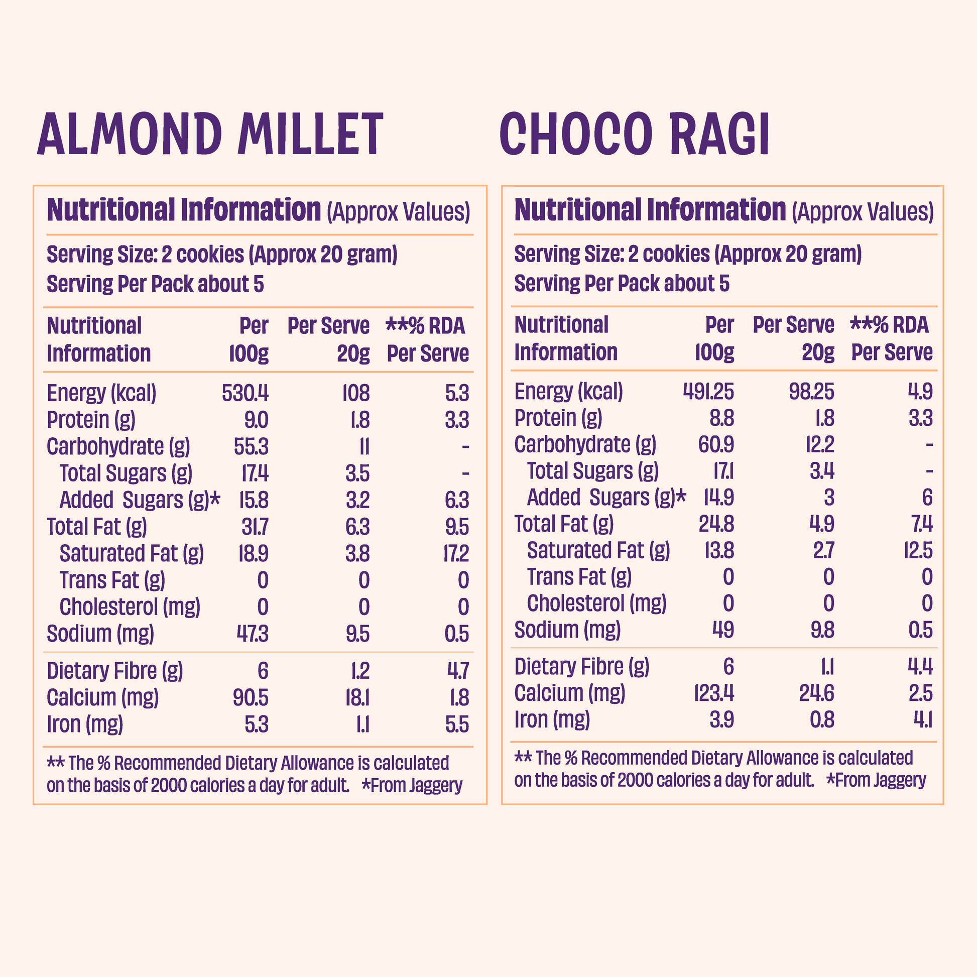 Choco Ragi x2 & Jowar Almond Cookies x1 (Pack of 3)