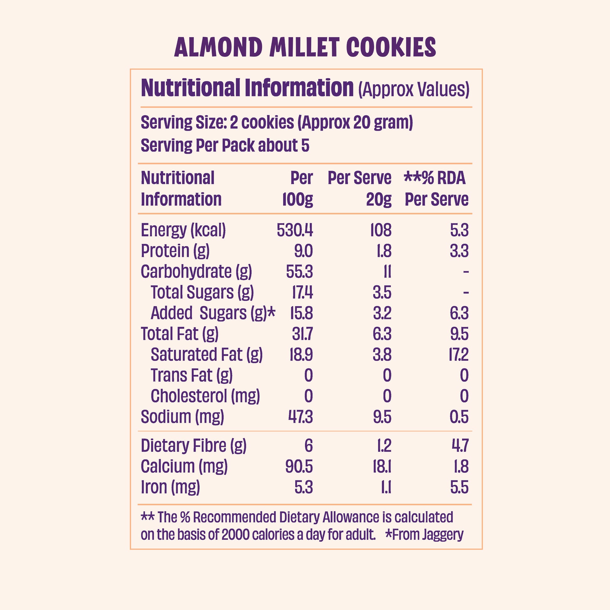 Millimo Cookies are sweetened only with jaggery, no refined sugar at all. You get a naturally sweet taste, without anything artificial or processed.