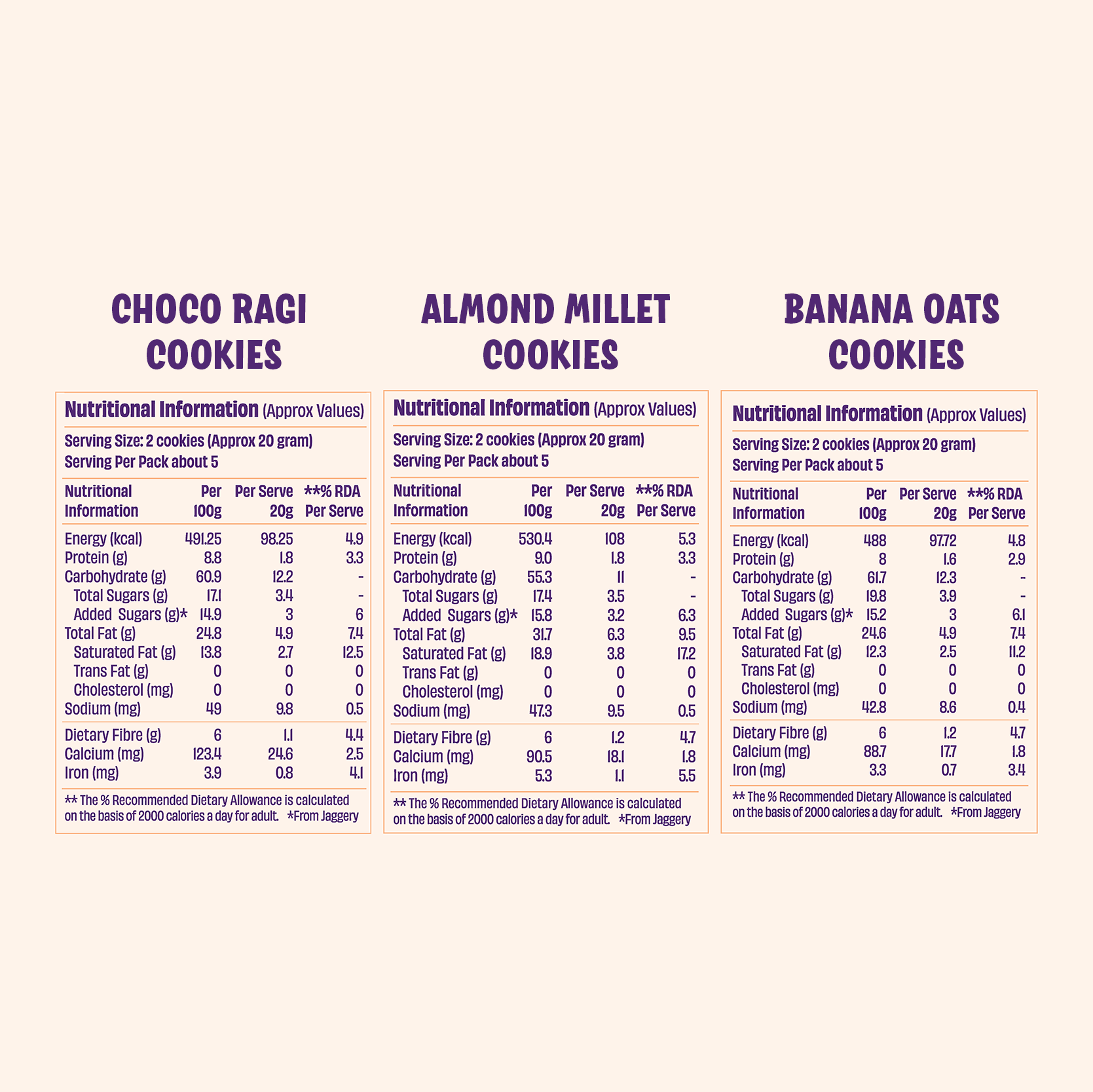 Choco Ragi x1, Oatful Banana x1 & Jowar Almond Cookies x1 (Pack of 3)